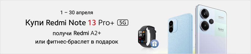 Приобретайте смартфон из представленного списка и получайте фитнес-браслет Xiaomi Smart Band 8 Pro или смартфон Redmi A2+ в подарок! Акция действует только с 1 по 30 апреля.